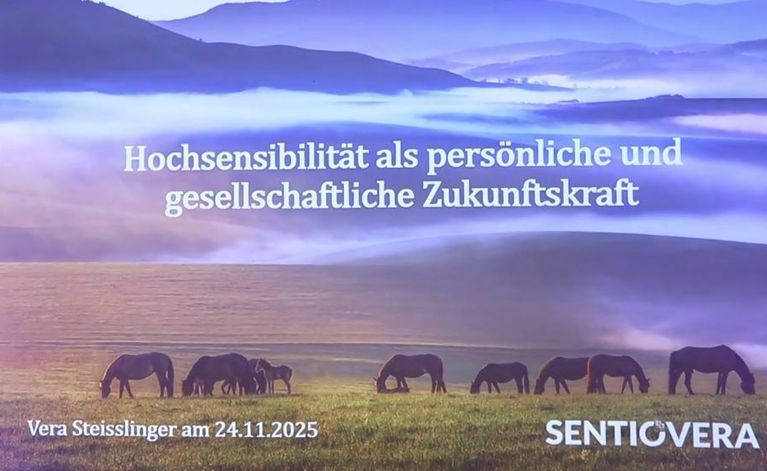 Der Vortrag "Hochsensibilität als Zukunftskraft" von Vera Stesslinger vom 24.11.2025 geht auf die Hintergründe von Hochsensibilität sowie die aus der Hochsensibilität erwachsenden Folgen und Fähigkeiten ein. Er dauert ca. 90 min.
